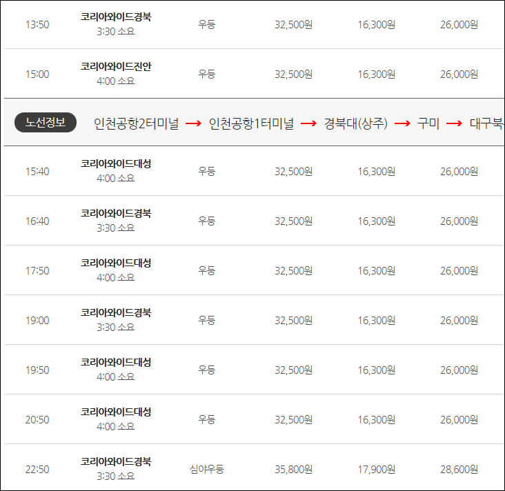 오늘 알려드릴 곳은 인천국제공항1, 2터미널에서 경상북도 구미시까지 가는 버스 시간표인데요, 먼저 글로 간단하게 정리를 해서 올리겠습니다. 더 자세한 정보는 아래 표와 이미지를 참고해주세요.