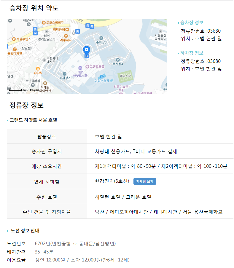 오늘 알려드릴 지역은 남산 밀레니엄서울힐튼호텔 그랜드하얏트서울호텔에서 인천공항 1, 2 터미널까지 향하는 리무진 6702번 공항버스 시간표인데요, 먼저 글로 간단하게 알려드리고, 더 자세한 시간표는 아래 표와 이미지를 참고하시면 되겠네요.