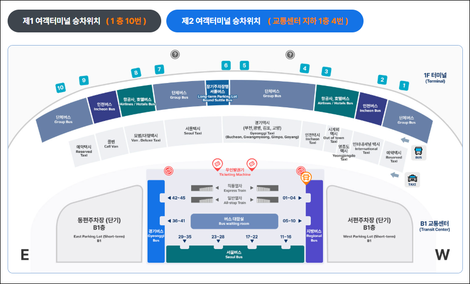 인천공항에서 부산 해운대 리무진 버스 시간표, 타는곳