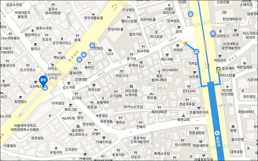 * 성균관대 - 성균관대입구 교차로에서 창경궁 방면 중앙버스전용차로