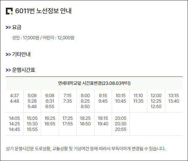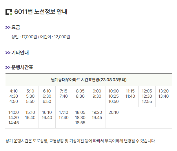 오늘 알려드릴 지역은 월계동에서 출발해 월곡뉴타운, 길음역, 미아리고개, 광화문, 혜화역, 연세대, 마포구청역 등을 경유해 인천공항 1, 2 터미널까지 향하는 리무진 6011번 공항버스 시간표인데요, 먼저 글로 간단하게 알려드리고, 더 자세한 시간표는 아래 표와 이미지를 참고하시면 되겠네요.
