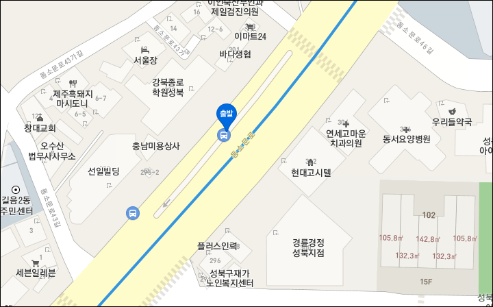 * 월곡뉴타운 - 현대백화점에서 미아리고개 방면 종로학원 앞 중앙버스전용차로.