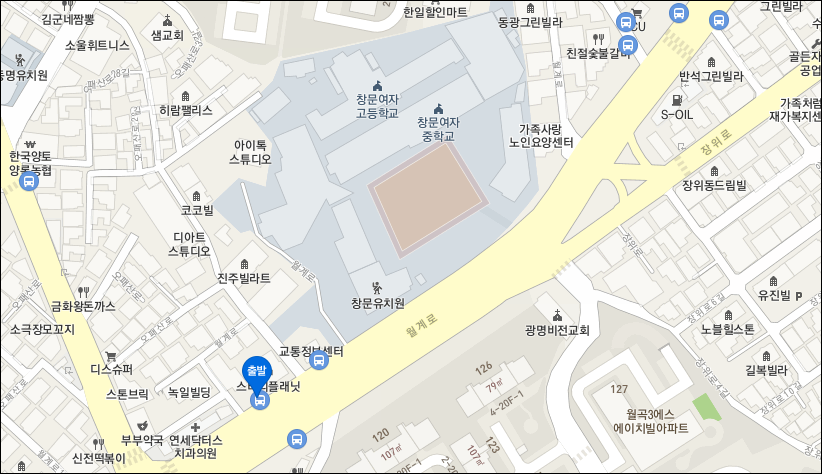 * 창문여고 - 창문여고쪽 교통정보센터 옆 정류장에서 탑승.
