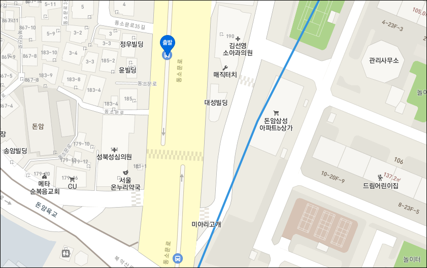 * 미아리고개 - 돈암삼성아파트 앞 중앙버스전용차로.